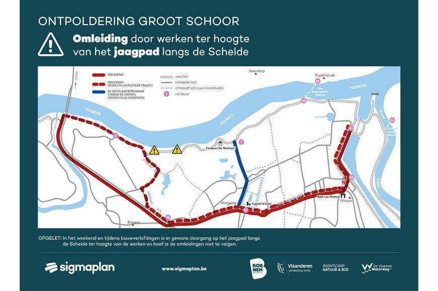 Wandel of fiets vanuit Temse op de dijk naar het pont van Rupelmonde.
